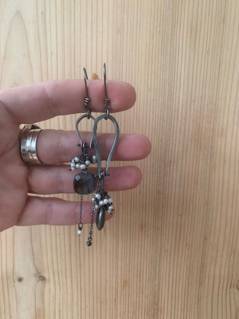 Material: 925 Sterlingsilber oxidiert, Labradorit und Süßwasserperlen